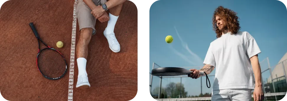 Padel delivers a full-body workout with quick movements, reflex training, and continuous action — all with lower joint impact compared to many sports.